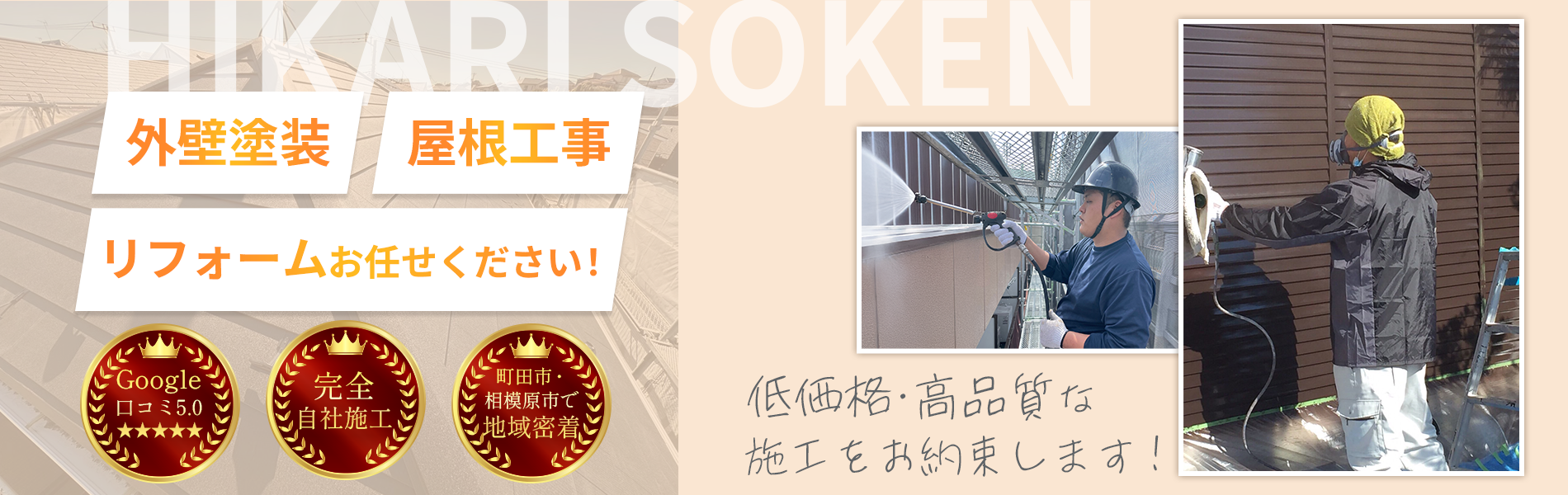 町田市・相模原市で外壁塗装や屋根工事をお考えの方は、ぜひ一度光輝創建にご相談ください。現地調査・お見積りは無料です。